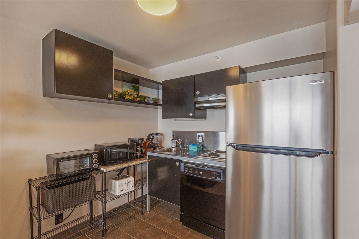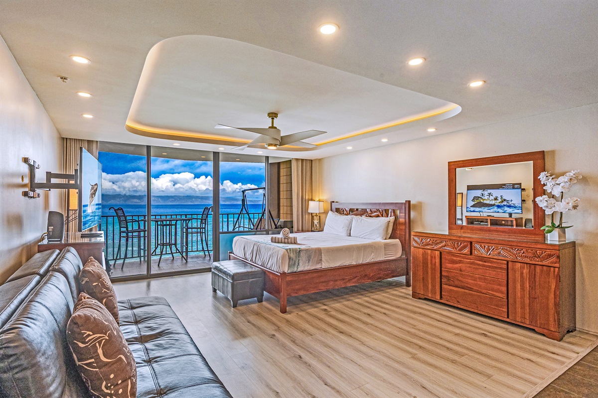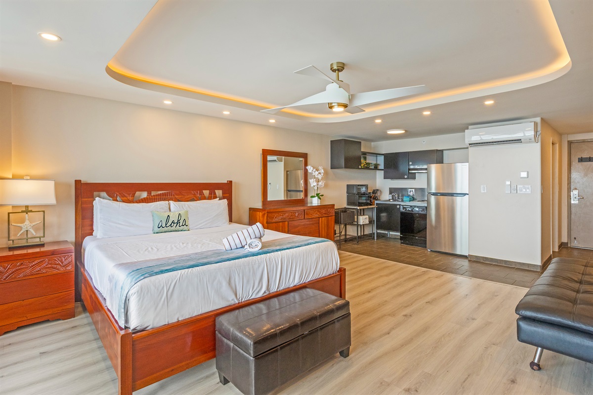 ✨ Comfortable Living Space: This cozy studio is thoughtfully designed with comfort and relaxation in mind. It features a comfortable king-sized bed, a well-appointed kitchenette, and a dining area where you can savor your meals while gazing out at the ocean.